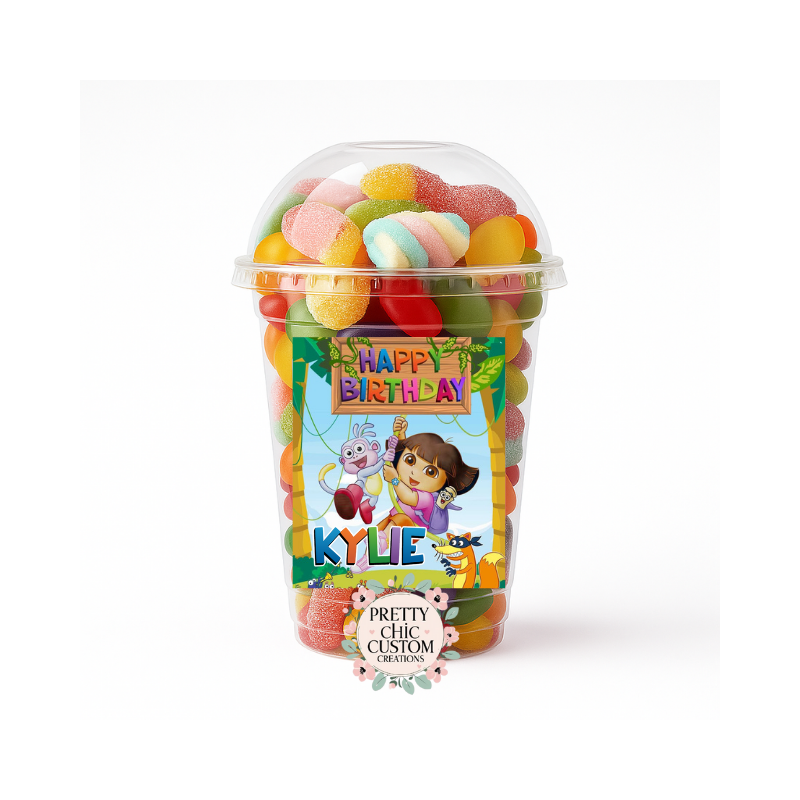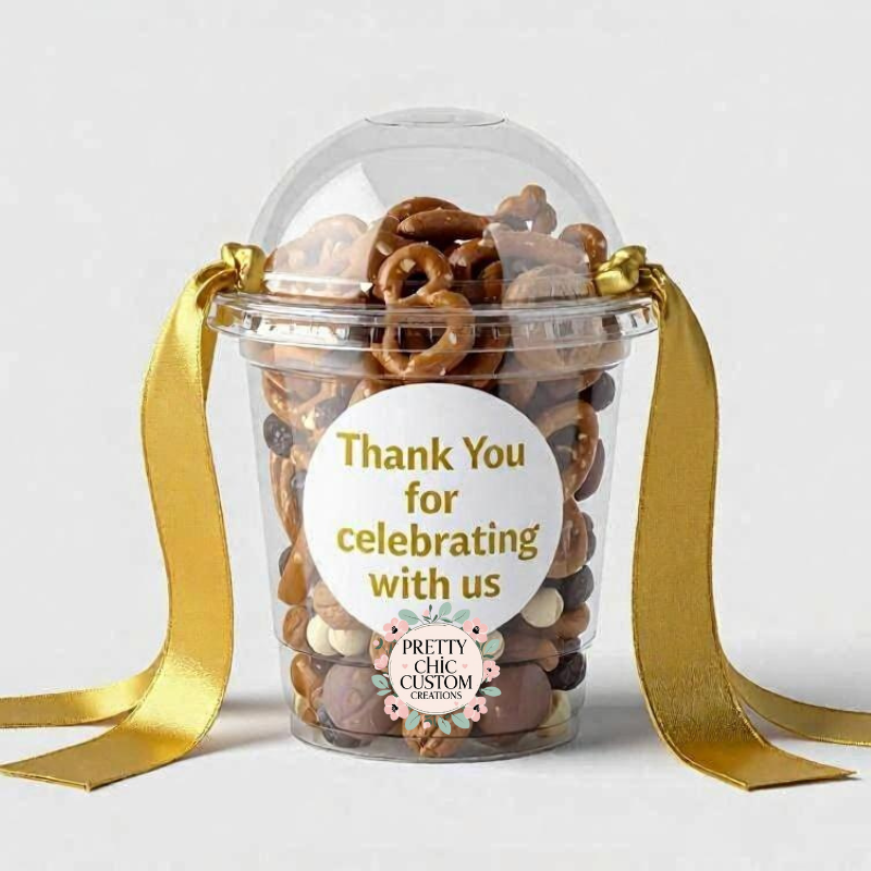 Our Domes Cups are the perfect addition to any celebration, offering both style and sweetness in one beautiful package. Each dome holds 350ml and comes with a custom-designed sticker tailored to your event theme, making it ideal for birthdays, baby showers, weddings, corporate events, and more.