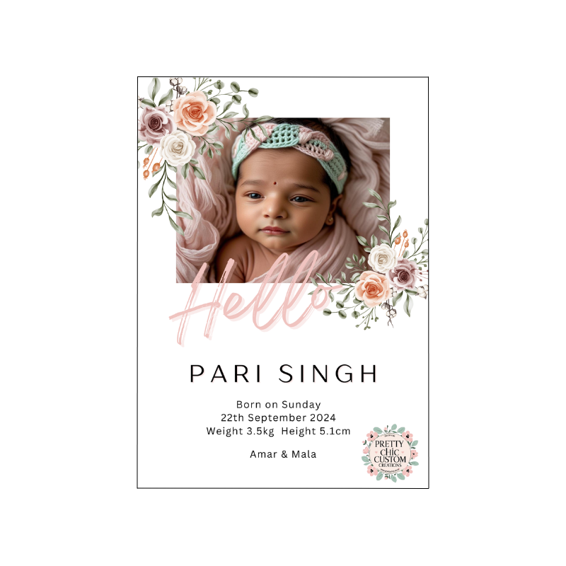 Strong magnetic backing ensures it can be displayed on fridges or magnetic boards, keeping your little one’s special arrival close at heart every day. A sentimental, lasting gift that’s as unique as your baby.